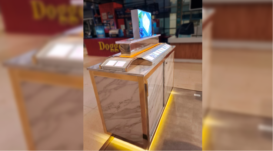Diseñado como una unidad modular y versátil, el mueble integra zonas de exhibición, almacenamiento oculto y plataformas elevadas que realzan los productos con una presencia imponente. Cada detalle —desde los bordes metálicos hasta la iluminación ambiental— fue desarrollado para reforzar la identidad de la marca y crear una experiencia visual coherente dentro del entorno comercial. Más que un mueble, es una pieza que transforma el espacio, aporta valor a la marca y genera una experiencia premium para el cliente.