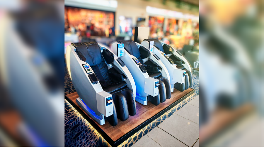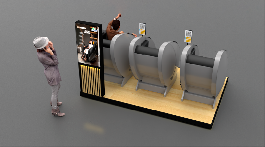 Fabricamos una plataforma premium para las sillas de masajes del Aeropuerto El Dorado, creada para integrar tecnología, confort y una experiencia visual impecable en uno de los espacios más transitados del país. El diseño se desarrolló con una base en madera industrial resistente al alto tráfico, iluminación LED cálida perimetral y un módulo informativo que comunica beneficios y modo de uso de manera clara y elegante.