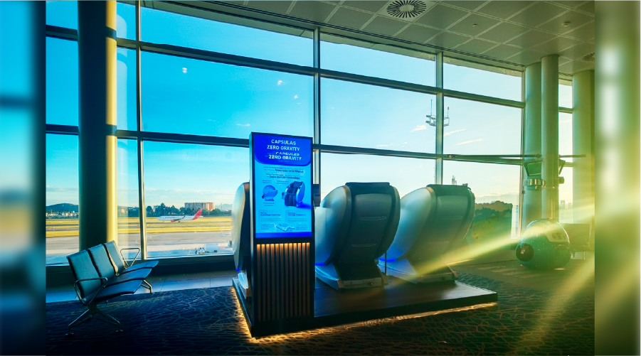 La plataforma está pensada para transformar un servicio funcional en un espacio atractivo, organizado y coherente con el entorno aeroportuario. Cada elemento —desde los acabados hasta la distribución de las sillas— fue concebido para ofrecer una experiencia cómoda y segura al usuario, al mismo tiempo que permite a la marca diferenciarse con una presencia moderna y de alto impacto. Un proyecto que une diseño, durabilidad y experiencia de usuario para crear un momento de descanso en medio del viaje.